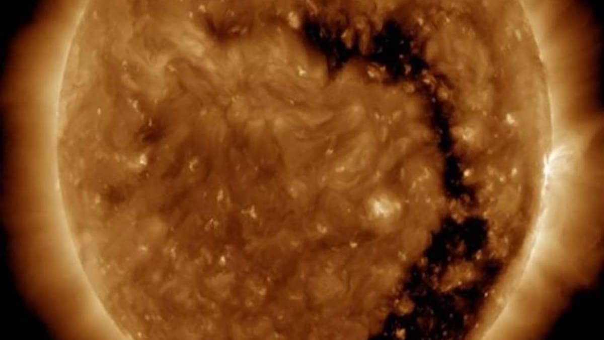 El Observatorio de Dinámica Solar de la Administración Nacional de la Aeronáutica, Nasa, detectó un hueco coronal en el Sol. Este, que se ve de color negro, fue captado por una luz ultravioleta que el ojo humano no puede localizar.
