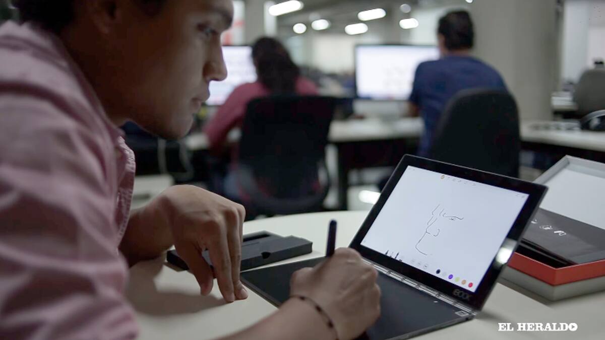 La periodista de tecnología Adriana Puentes y Paulo Peña C. , diseñador gráfico de EL HERALDO, revisan la Yoga Book de Lenovo. Estas son sus primeras impresiones.