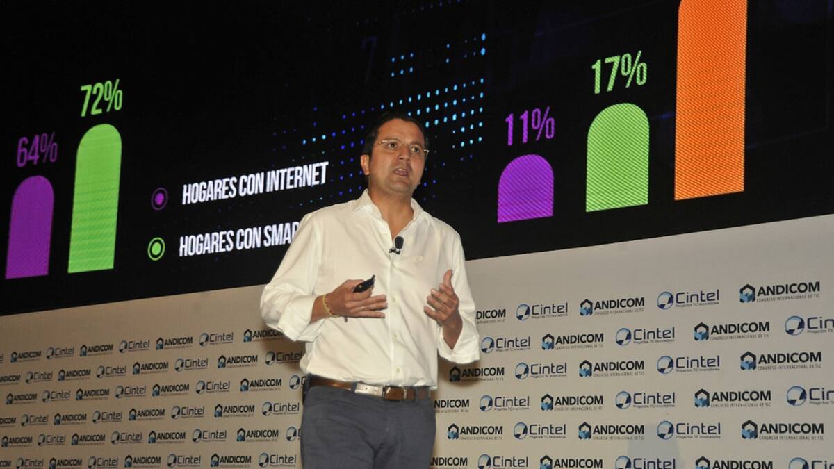 Durante la apertura de Andicom dijo: 'Hemos democratizado el acceso a Internet en todas las regiones del país. Hoy el 64% de los hogares cuenta con acceso a Internet y solo el 8% de los que no tienen conexión'.