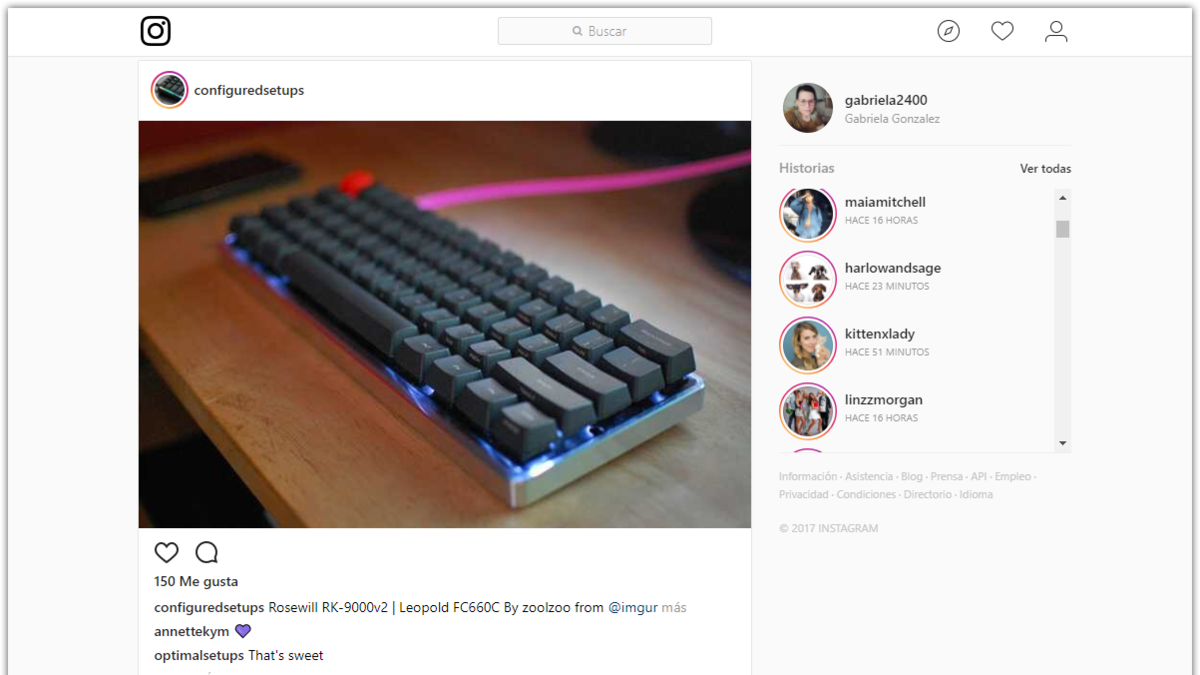 Al ingresar a Instagram.com desde el ordenador se podrá observar un nuevo panel a la derecha en el que se listan todas las historias de tus contactos en las últimas 24 horas. El usuario podrá moverse entre estos contenidos haciendo clic sobre las imágenes, pasar de una historia o regresar a una anterior, con los botones que aparecen en cada extremo lateral.