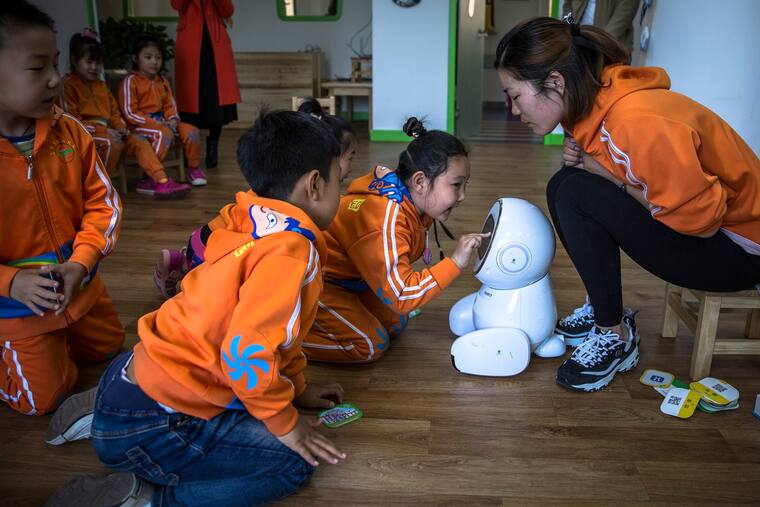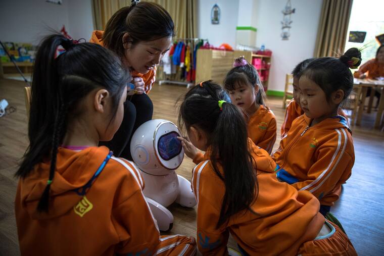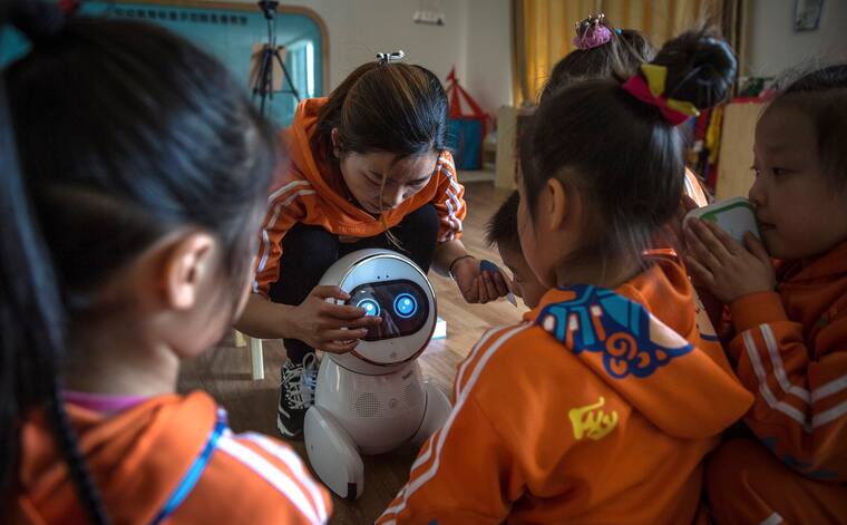 Un ejemplo de los nuevos roles de estos humanoides se puede encontrar en una de las mayores guarderías del país, llamada ‘Jardín Dorado’ y situada a medio camino entre Pekín y Tianjin, donde tres robots blancos y de silueta curva, para que parezcan inofensivos a los niños, son los protagonistas de la clase.