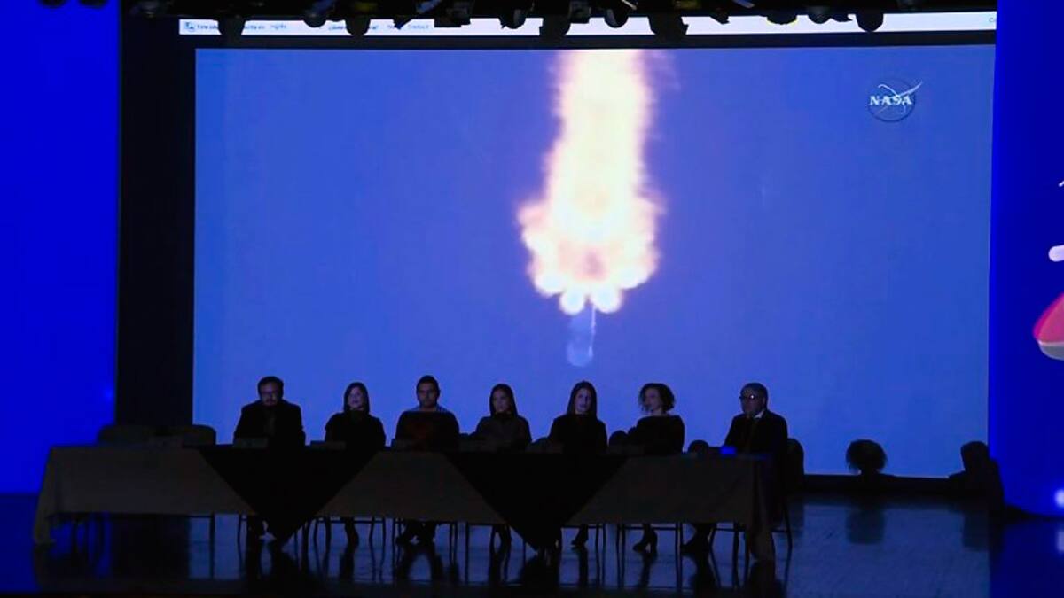 Autoridades científicas y estudiantes universitarios acompañaron el lanzamiento desde un auditorio en San José a través de un enlace de video desde Florida.