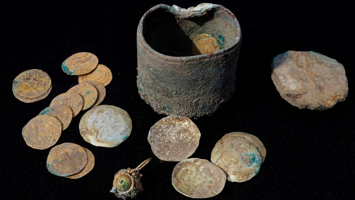 Un tesoro de monedas de oro probablemente enterrado hace 900 años para protegerlo de la conquista de la ciudad por los Cruzados y nunca recuperado por su propietario, fue descubierto en el antiguo puerto de Cesarea (norte).