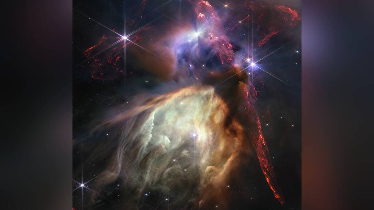 'Hay como unas 50 estrellas jóvenes en la imagen y aunque se mire pequeño, todavía se observan unos chorros bipolares, los que se ven en rojo. Eso ocurre porque están hechos de hidrógeno molecular y esto sucede cuando una estrella estalla, es ahí cuando brota por primera vez de su envoltura natal de polvo y gas'.