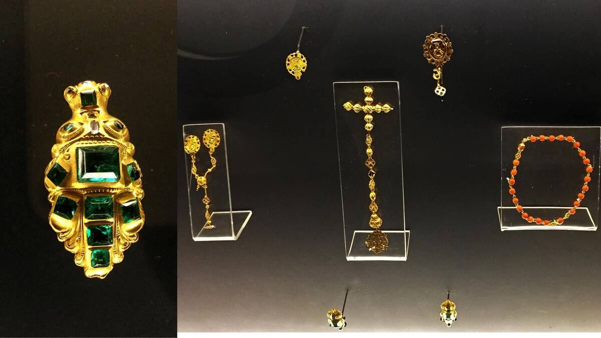 La colección, que incluye anillos, medallas, relicarios, rosarios, botones, hebillas de zapatos, mancuernillas y 15 mondadientes de oro, esmeraldas y diamantes, está ahora en la muestra permanente 'El tesoro de Alacranes', en el Museo de Arqueología Subacuática El Fuerte de San José El Alto, en Campeche, estado del sureste mexicano.