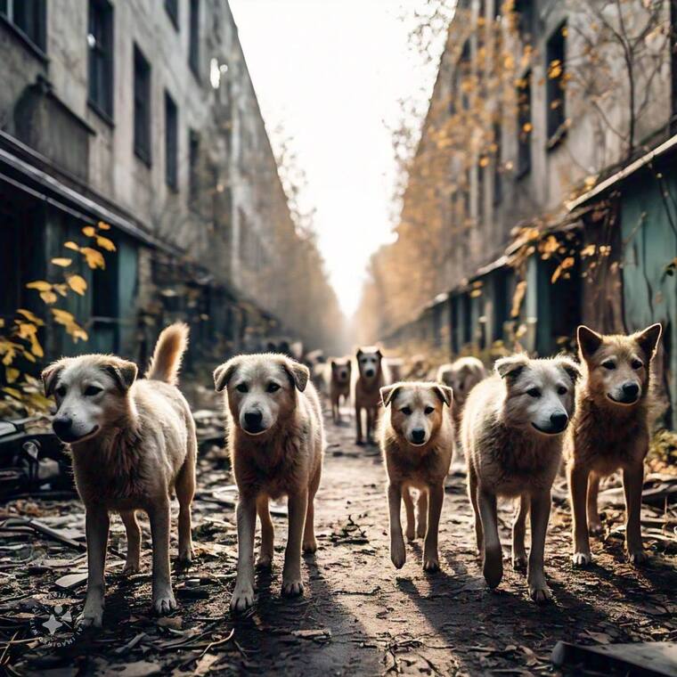 Además, también participaron perros que los encontraron en Slavutych, a 45 km del sitio. Los perros viven en situaciones extremas pues no hay presencia de humanos.