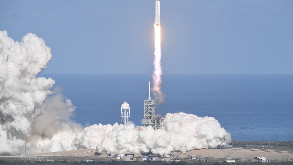 Al despegar tras encenderse sus 27 motores Merlin para generar un empuje de más de 2.500 toneladas -el equivalente a 18 Boeing 747 verticalmente-, este conjunto de tres Falcon 9 no apuntará directamente a Marte.