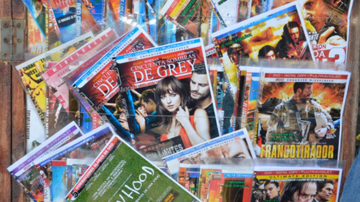 'Se llama Cincuenta Sombras de Grey y es pura dinamita', asegura el sujeto, mientras baja de su hombro derecho una caja llena de filmaciones piratas, entre esas la que les ofrece a los jóvenes, que con intriga deciden detenerse para mirar qué les ofrece el vendedor.