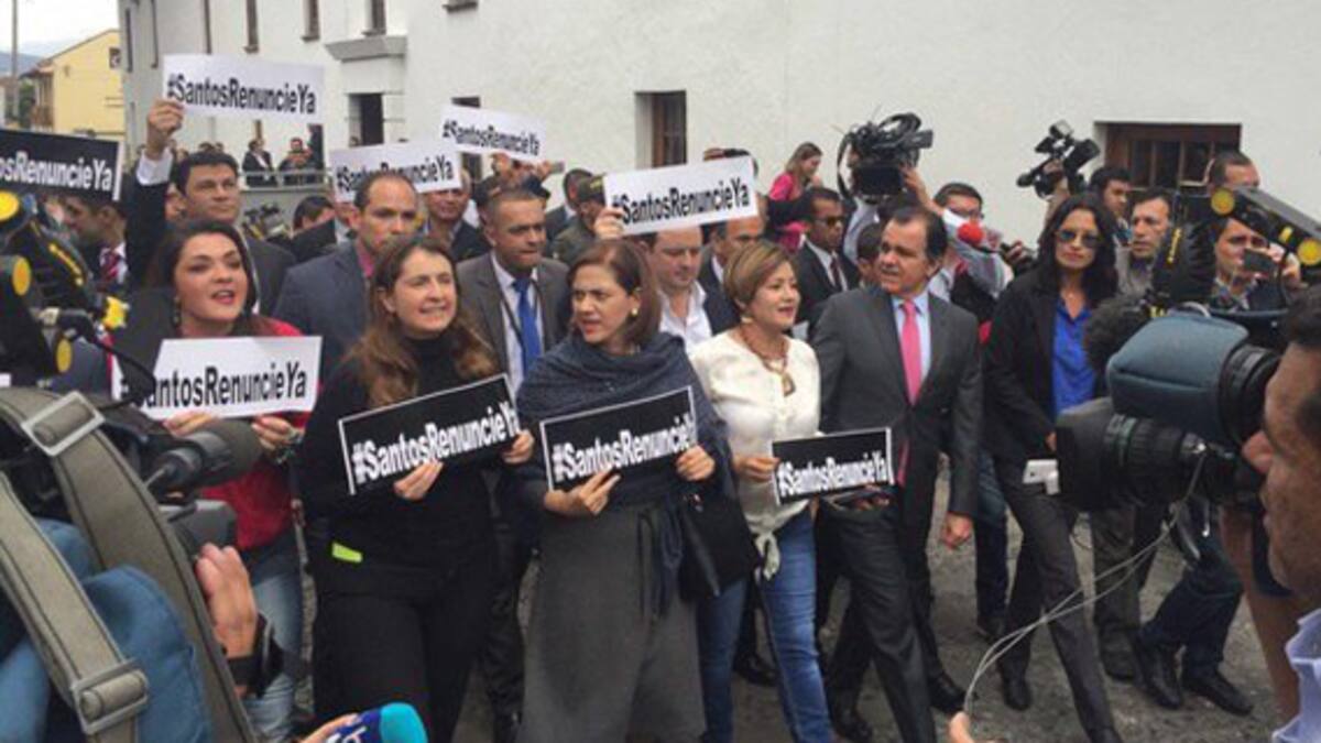 Los opositores mostraron pancartas con el #SantosRenunciaYa.