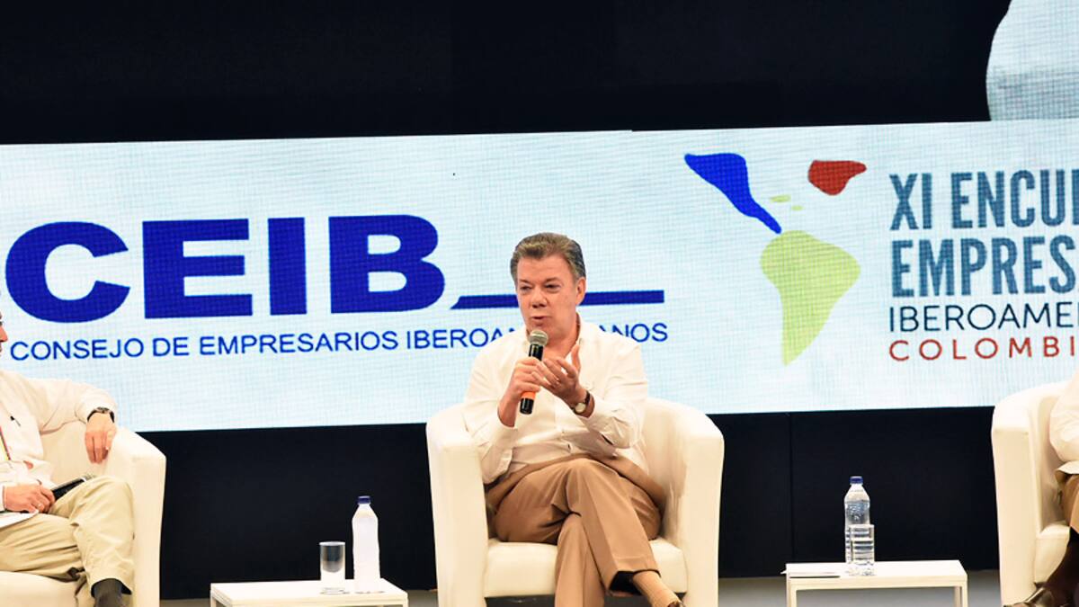 Santos habló sobre el proceso con la guerrilla durante un panel del XI Encuentro Empresarial Iberoamericano, organizado por la Asociación Nacional de Empresarios de Colombia (Andi), la Secretaría General Iberoamericana (SEGIB), el Consejo de Empresarios Iberoamericanos-CEIB y el Banco Interamericano de Desarrollo (BID).