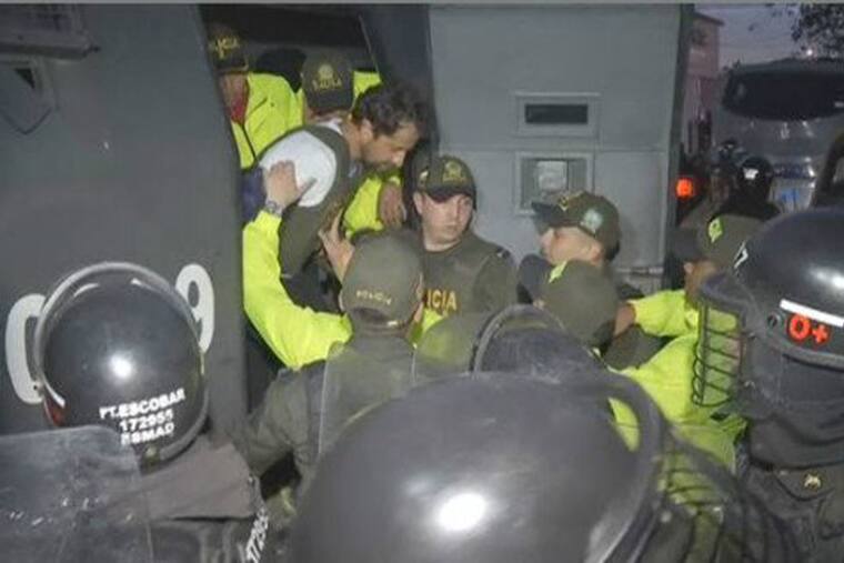 En cuestión de segundos, el arquitecto de 38 años, graduado de la Pontificia Universidad Javeriana, fue embarcado en una tanqueta del Esmad, que inmediatamente partió del lugar con rumbo hacia los juzgados de Paloquemao, donde se llevará a cabo la audiencia de la legalización de la captura.