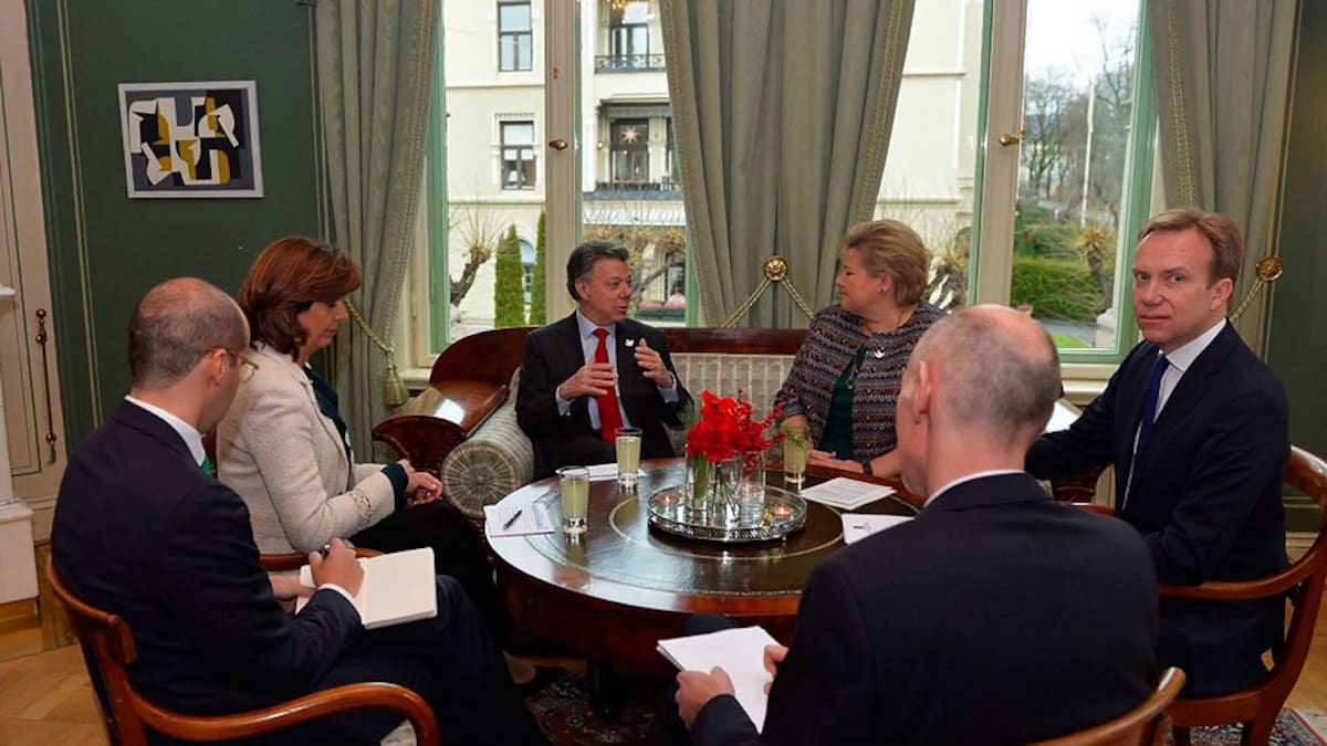 Santos, que cumple su tercera jornada en Oslo, se entrevistará luego con la primera ministra, Erna Solberg, con quien compartirá un almuerzo antes de celebrar una rueda de prensa.