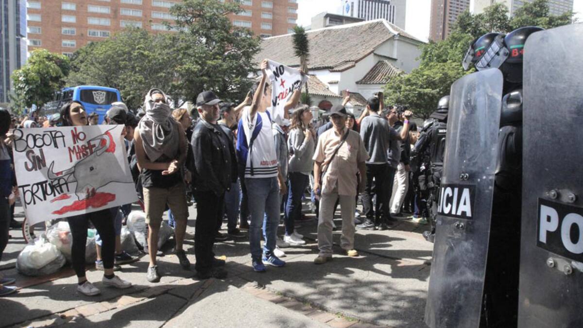 Los policías llegaron a lanzar gases lacrimógenos para dispersar a los manifestantes y tuvieron que hacer un callejón junto con miembros de la Defensoría del Pueblo y gestores de convivencia para escoltar a los taurófilos hasta dentro de la Santamaría.