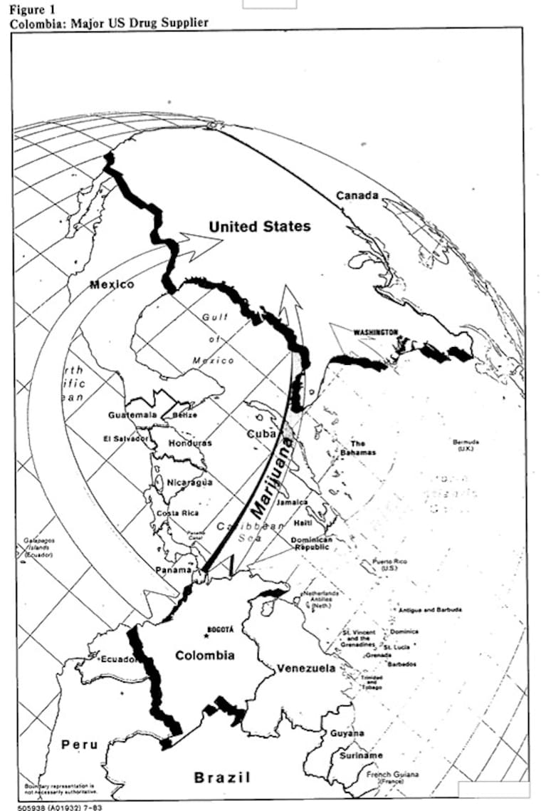 Se reportan además los empobrecidos recursos militares y policiales con que Colombia enfrentaba el gigante del narcotráfico en los ochentas: 'otro y muy importante impedimento para un esfuerzo efectivo para suprimir el problema de los estupefacientes es el hecho de que las fuerzas colombianas de aplicación de la ley son extremadamente débiles; la Marina y la Guardia Costera son demasiado pequeñas para patrullar las costas contra el contrabando; El ejército y las órdenes de la Policía Nacional no se ejecutan realmente en la parte oriental del país, que está más allá del control gubernamental y donde las Farc y los cultivadores de coca operan con relativa impunidad (...)'.