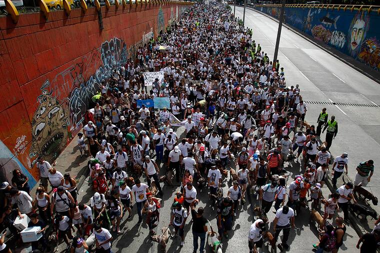Más de 2.000 personas participaron hoy junto con sus mascotas en una marcha en Medellín para intentar desestigmatizar a los perros pitbull e informar a sus dueños sobre el adecuado manejo de esta raza.