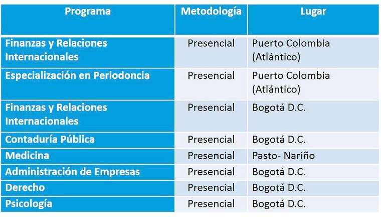 Esa misma cartera ministerial acaba de aprobar dos renovaciones de registros calificados para los programas de Medicina y Publicidad y Mercadeo, ambos en Bogotá.