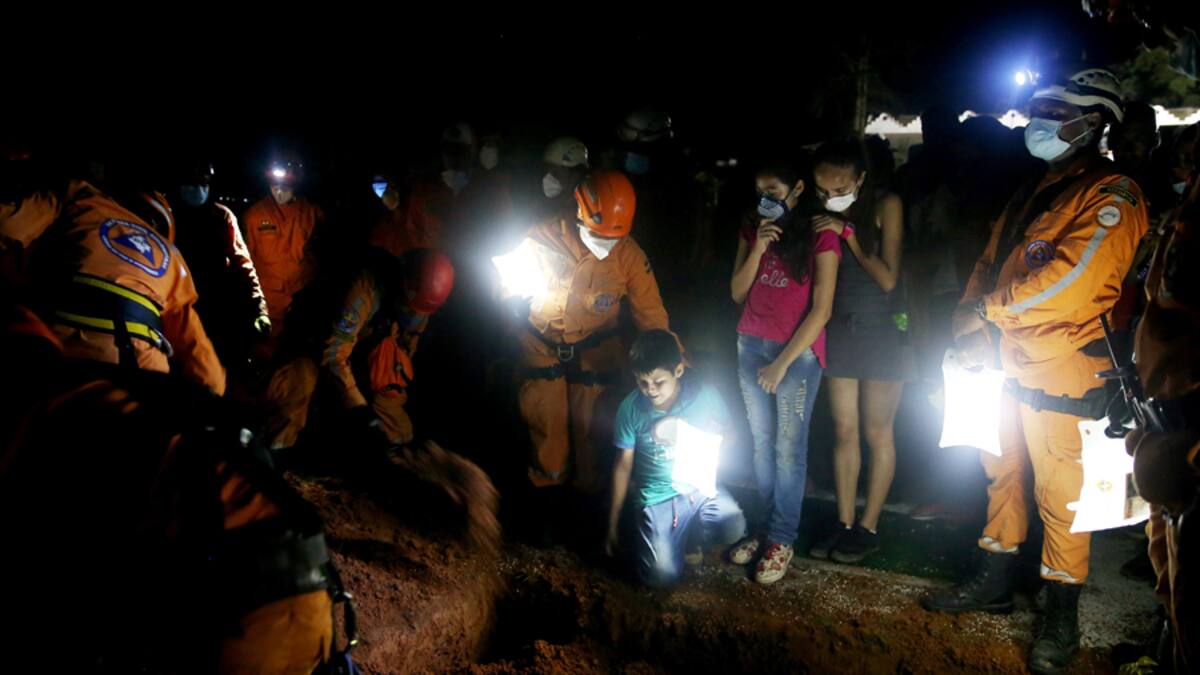 Antes de sepultarlo, los miembros de la Defensa Civil le hicieron una calle de honor que iluminó la noche de Mocoa.