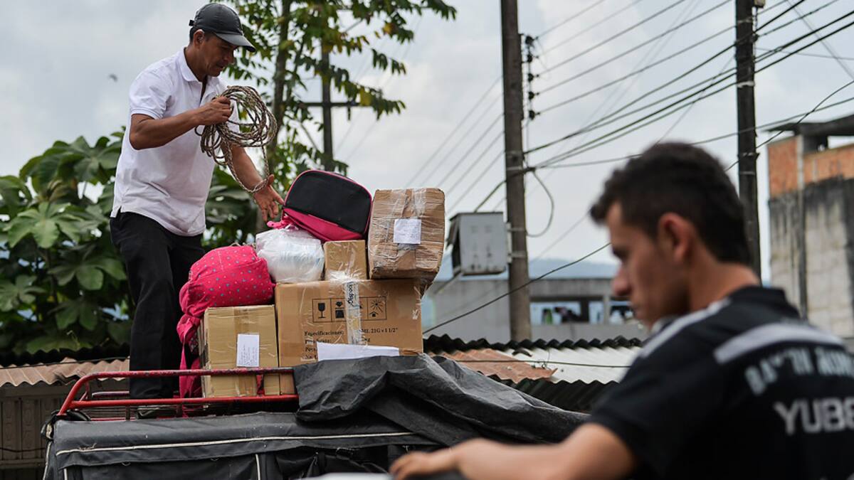 Mientras los conductores cargan cuatro enormes bolsas con sus pertenencias en una de las camionetas, Carolina Ruales, de 36 años, dice que se va porque se quedó 'sin trabajo y por miedo a las epidemias', pese a la campaña de vacunación emprendida por el gobierno en la zona.