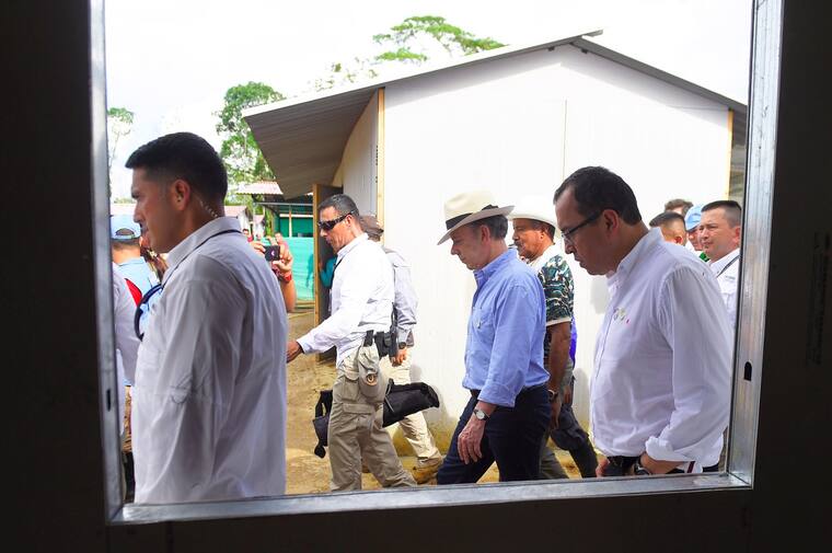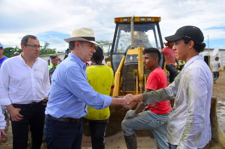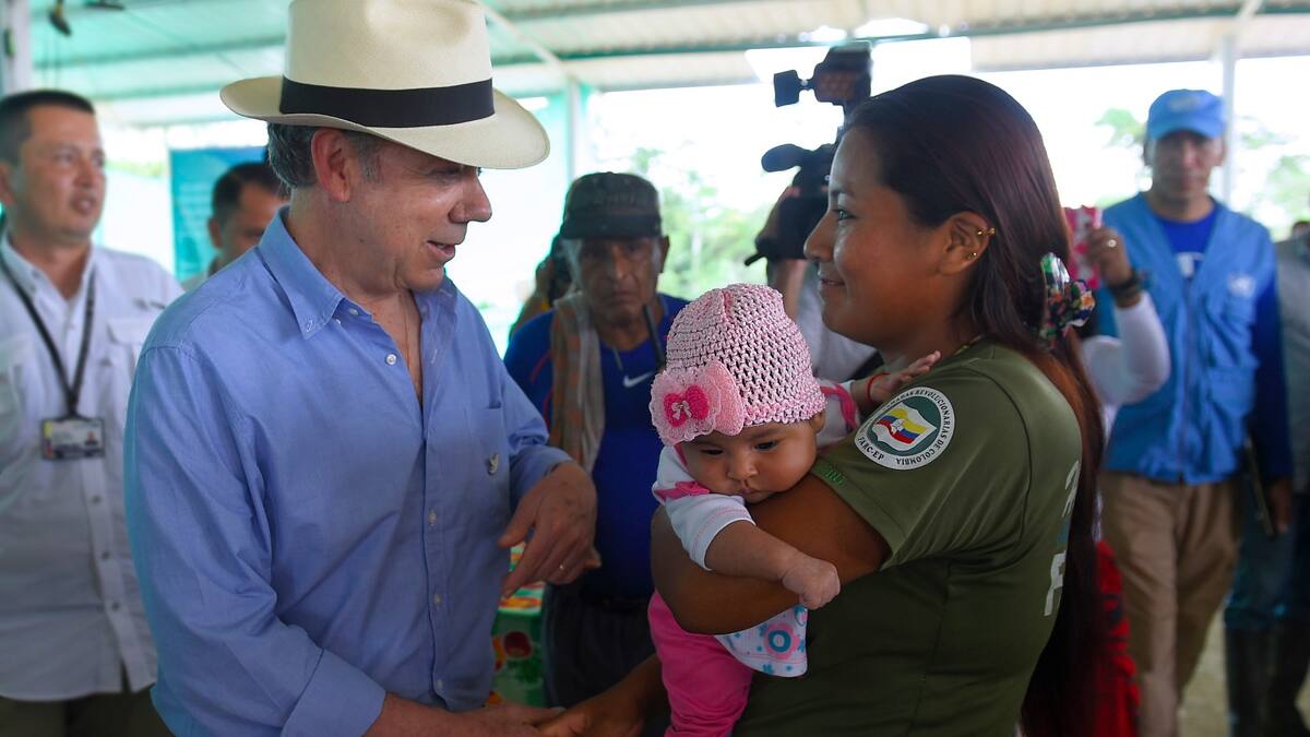 El mandatario viajó a Mocoa, capital del Putumayo afectada por una avalancha que dejó 323 muertos, para constatar el avance de la reconstrucción, y posteriormente se desplazó a La Carmelita, una de las 26 zonas donde permanecen integrantes de las Farc previo a su desmovilización y desarme.