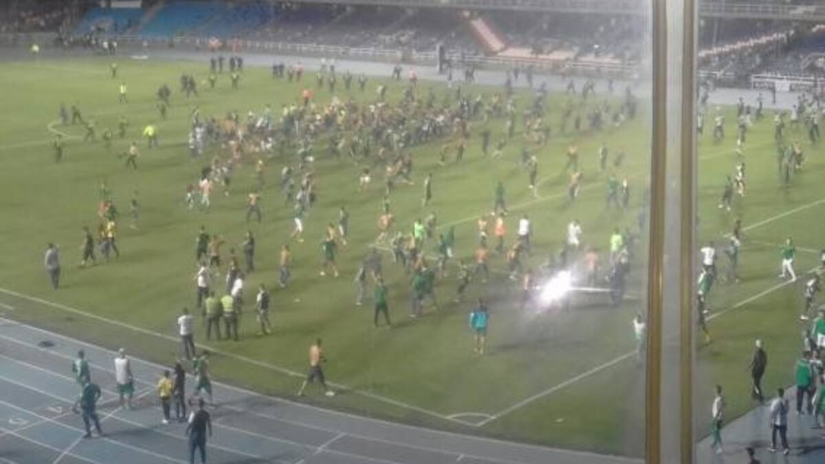 En videos se alcanzó a apreciar que hinchas del Deportivo Cali ingresaron a la cancha en búsqueda de la hinchada rival, que también invadió el campo e inició un enfrentamiento. Uniformados de la Policía intervinieron para tratar de evitar la gresca.