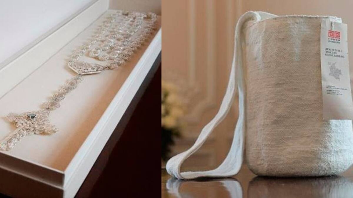 'La bolsa se hizo conforme a la tradición, después de obtener el 'permiso' del mamu o líder espiritual', indica el boletín, añadiendo que 'las arhuacas tejen las mochilas en fique, algodón y lana de ovejo. Las de uso personal son hechas con fique mientras que las del mamu siempre se hacen en algodón, fibra que consideran sagrada'.