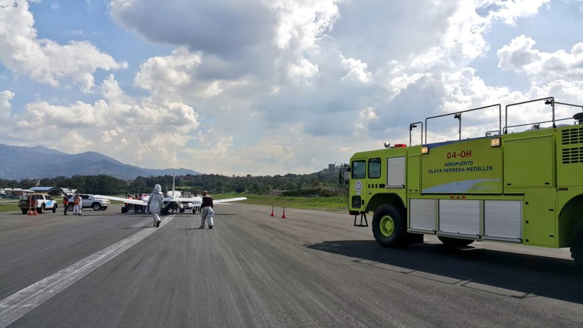 A través de la cuenta en Twitter del aeropuerto de Medellin, reportaron que inspectores técnicos de la Aeronáutica Civil realizan una evaluación de la situación para autorizar el movimiento del avión.
