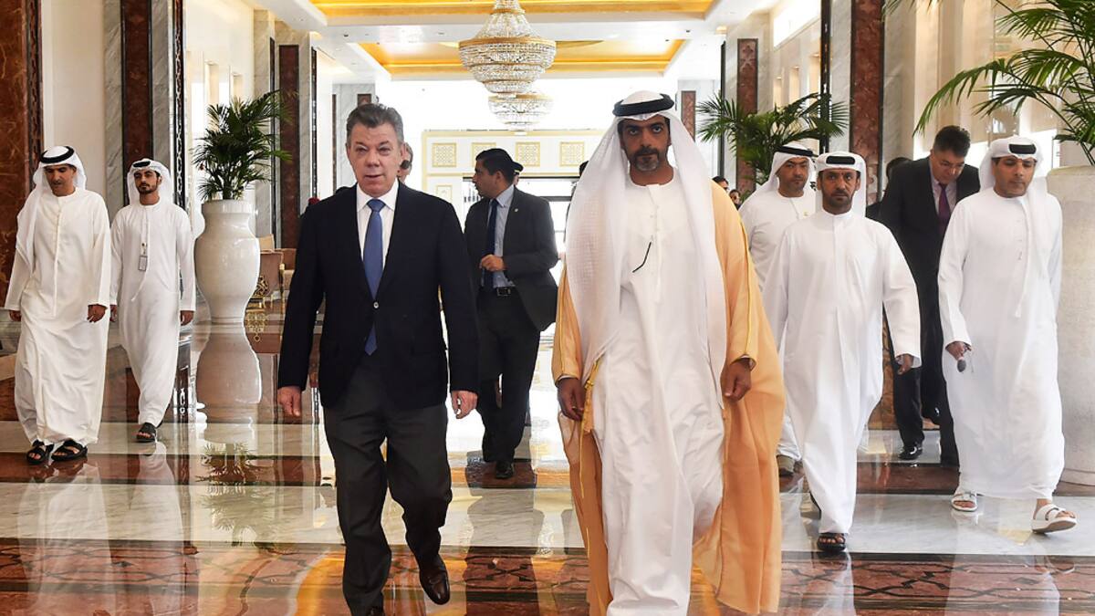 El presidente de la República, Juan Manuel Santos, llegó ayer a Abu Dhabi en medio de su visita oficial a los Emiratos Árabes Unidos (EUA), con el fin de fortalecer el comercio y atraer la inversión de este país a Colombia.