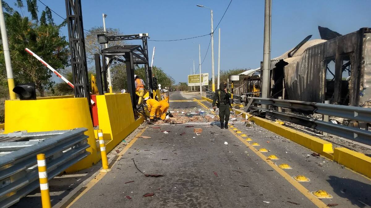 El segundo hecho se registró pasadas las seis de la mañana en el sector de Boquerón, municipio de Curumani, donde miembros del ELN detuvieron una tractomula e hicieron detonar una carga explosiva afectando el pavimento. Autoridades continúan en labores para arreglar los daños causados.