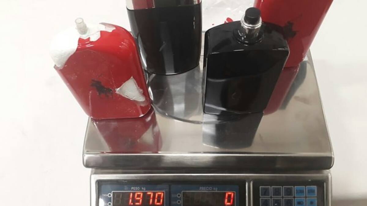 La Dirección de Antinarcóticos de la Policía Nacional descubrió una nueva modalidad de enviar droga hacia territorio extranjero, que consiste en diluir el estupefaciente en frascos de finas lociones para mujer.