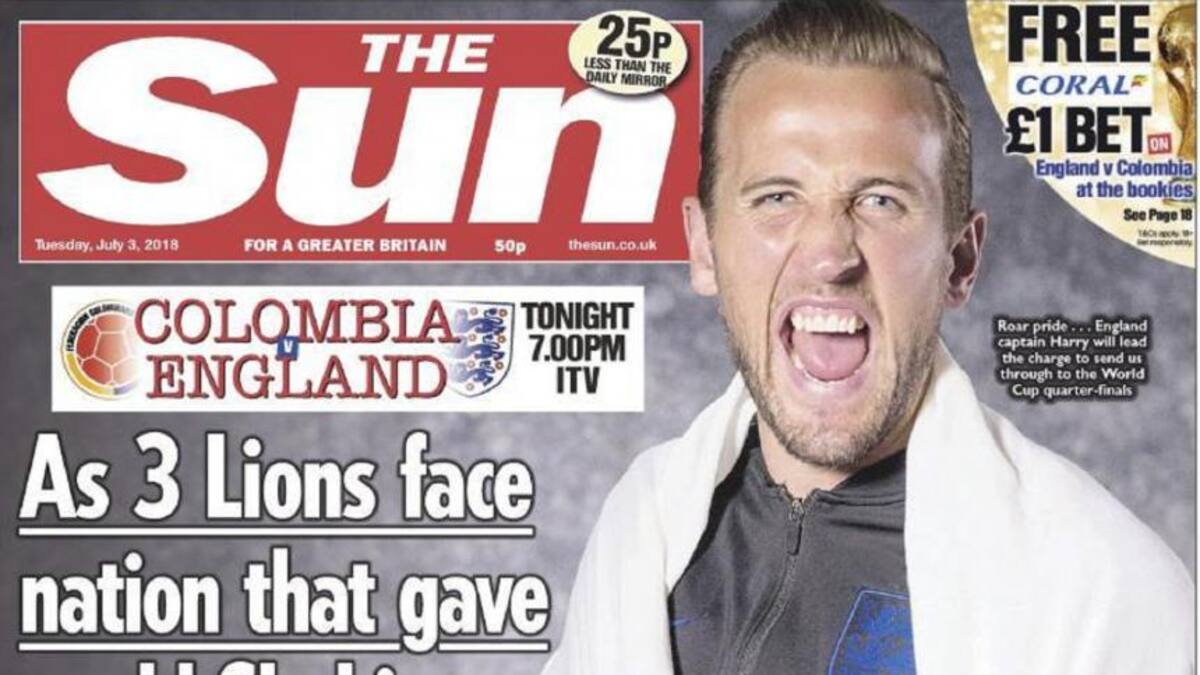 'Go Kane!', tituló el tabloide en portada, con una foto del delantero estrella inglés Harry Kane.