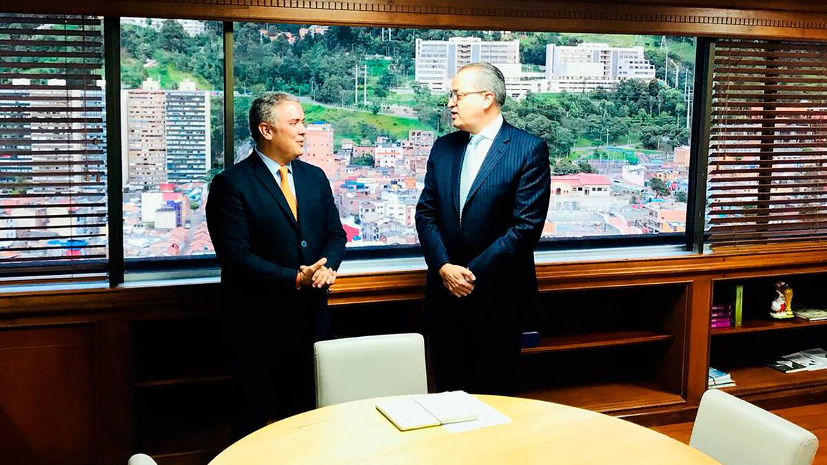 El jefe del Ministerio Público le expresó al nuevo jefe de Estado su disposición para trabajar en conjunto con el fin de adoptar medidas para proteger a los líderes sociales, avanzar en el diálogo regional para evitar la protesta violenta y construir un estatuto contra la corrupción.