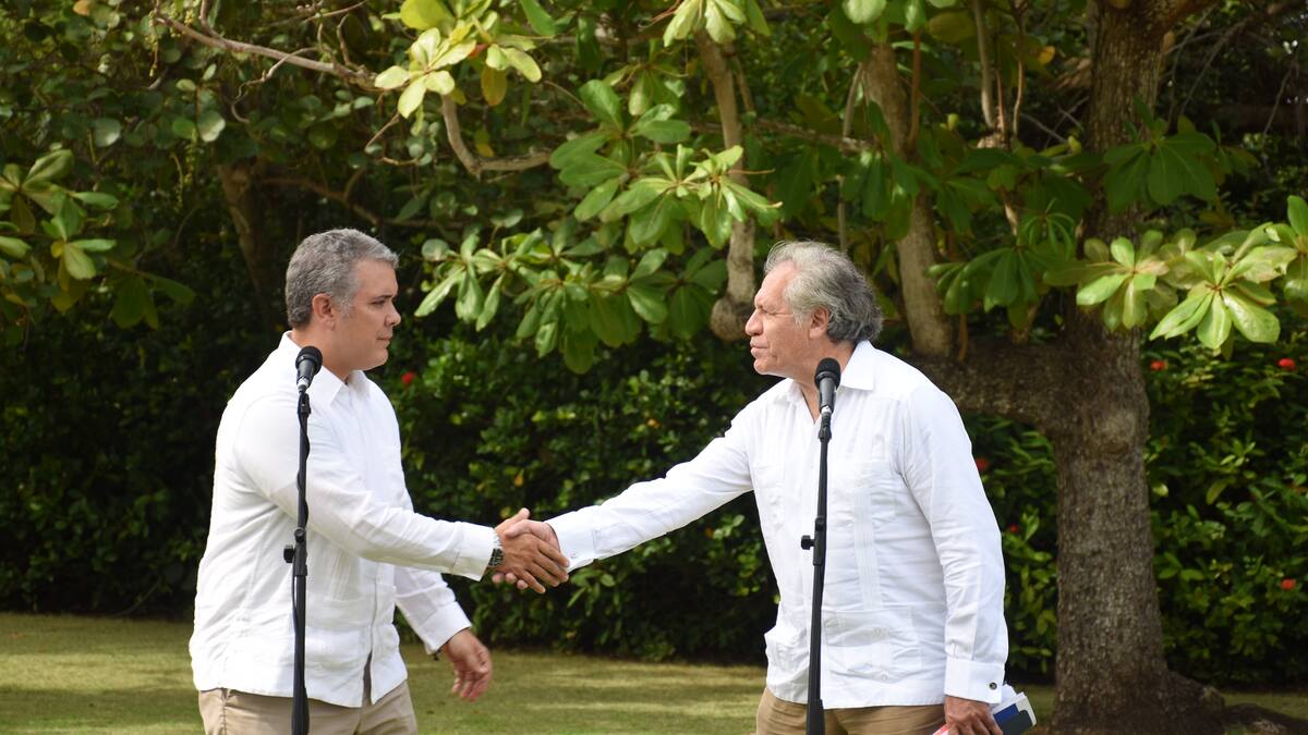 El anuncio de Almagro se dio luego de una reunión de trabajo de cerca de 40 minutos, con el presidente Iván Duque, en la que también se abordaron temas como el cumplimiento de los acuerdos de paz y la puesta de marcha de estrategias que permiten enfrentar la crisis migratoria venezolana.