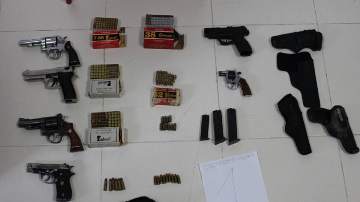 En un parqueadero del centro de Medellín, agentes del CTI de la Fiscalía hallaron tres pistolas y tres revólveres, además de municiones en cantidad, pertenecientes según el ente investigador a una organización criminal.