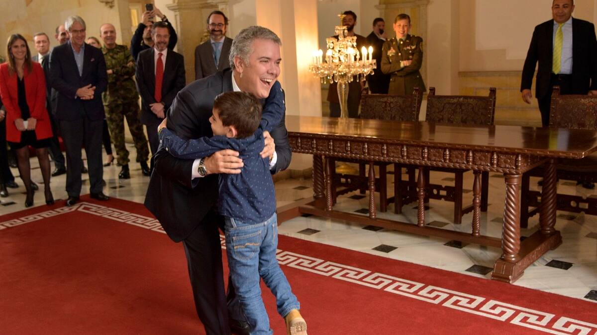 El presidente de la República, Iván Duque, recibió al menor Cristo José Contreras, junto con su familia en la Casa de Nariño, para rendir un homenaje y celebrar su liberación.