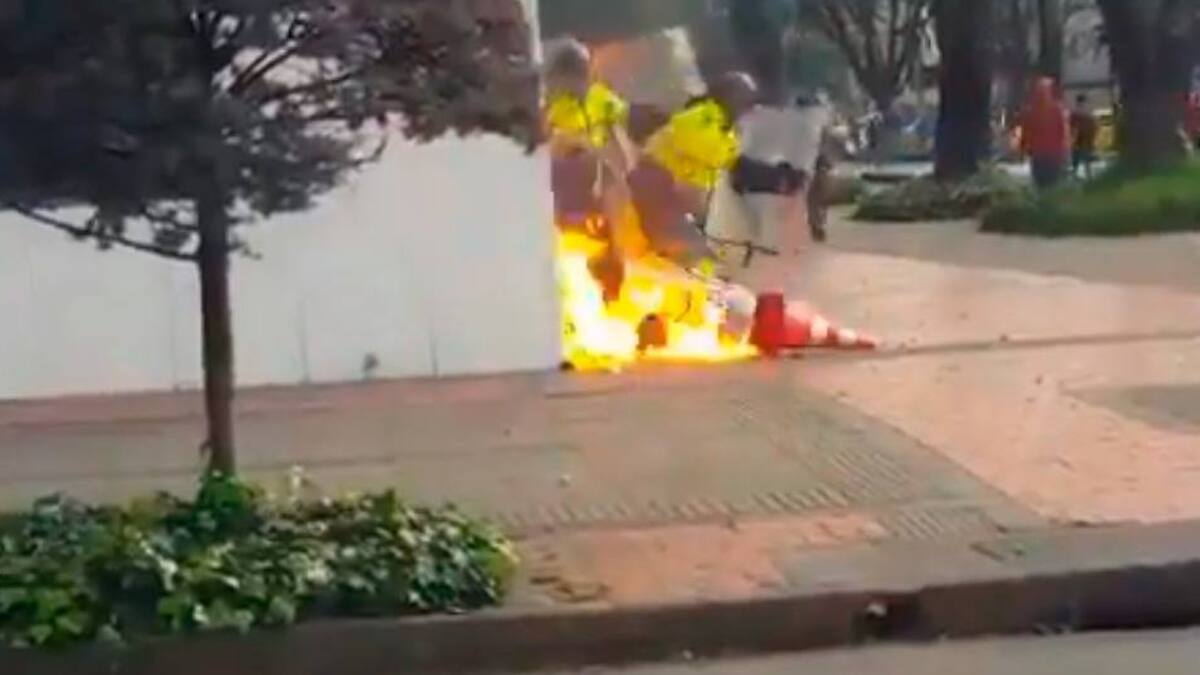Miembros del Esmad y la Policía intentaron controlar la situación tras el ataque a los uniformados por parte de los vándalos, hecho que quedó registrado en video.