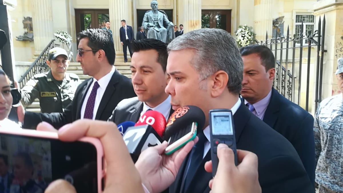 El presidente de la República Iván Duque asistió a la Academia Colombiana de la Lengua para visitar el cuerpo del expresidente Belisario Betancur que reposa en este emblemático lugar del centro de Bogotá.
