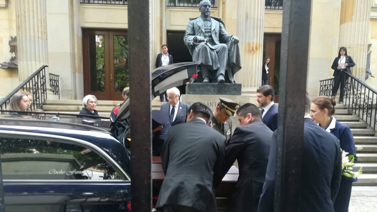 El sábado, durante gran parte del día, el féretro con el cuerpo del exmandatario Conservador estuvo en cámara ardiente, en la Academia Nacional de la Lengua, en el centro de Bogotá.