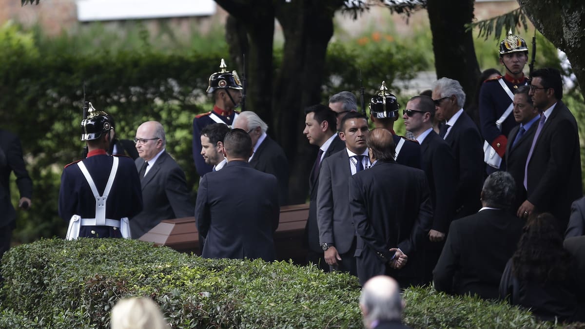 Las exequias del exmandatario se cumplieron en el Gimnasio Moderno, en el norte de Bogotá. La ceremonia estuvo acompañada por un homenaje que le hizo el Batallón Guardia Presidencial, con honores militares.