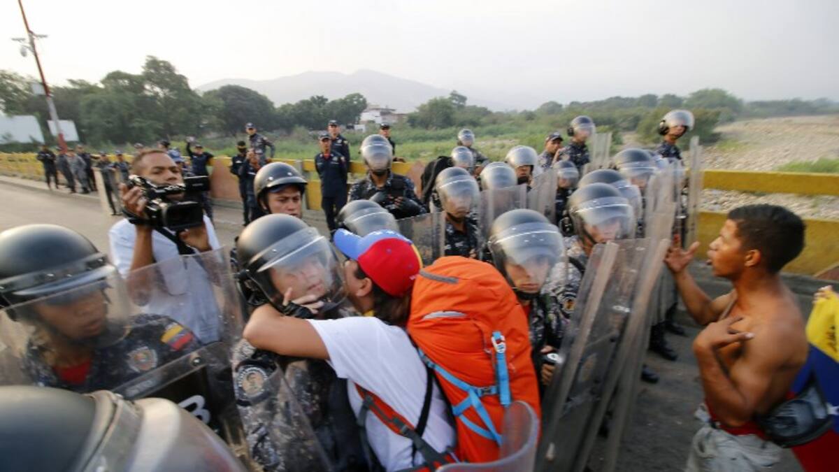 Militares venezolanos dispersaron este sábado con gases lacrimógenos y proyectiles de goma a decenas de personas que exigían cruzar hacia Colombia por un puente fronterizo de Ureña (Táchira) cuyo cierre fue ordenado por el gobierno venezolano para evitar al entrada de ayuda humanitaria.