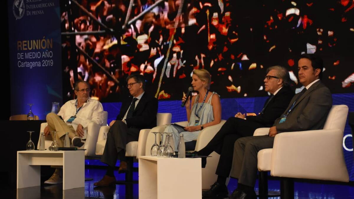 En su intervención en la reunión semestral de la Sociedad Interamericana de Prensa que se lleva a cabo en Cartagena, el presidente Iván Duque celebró que en el evento se traten temas relacionados con las amenazas que existen en la región, específicamente en Venezuela.