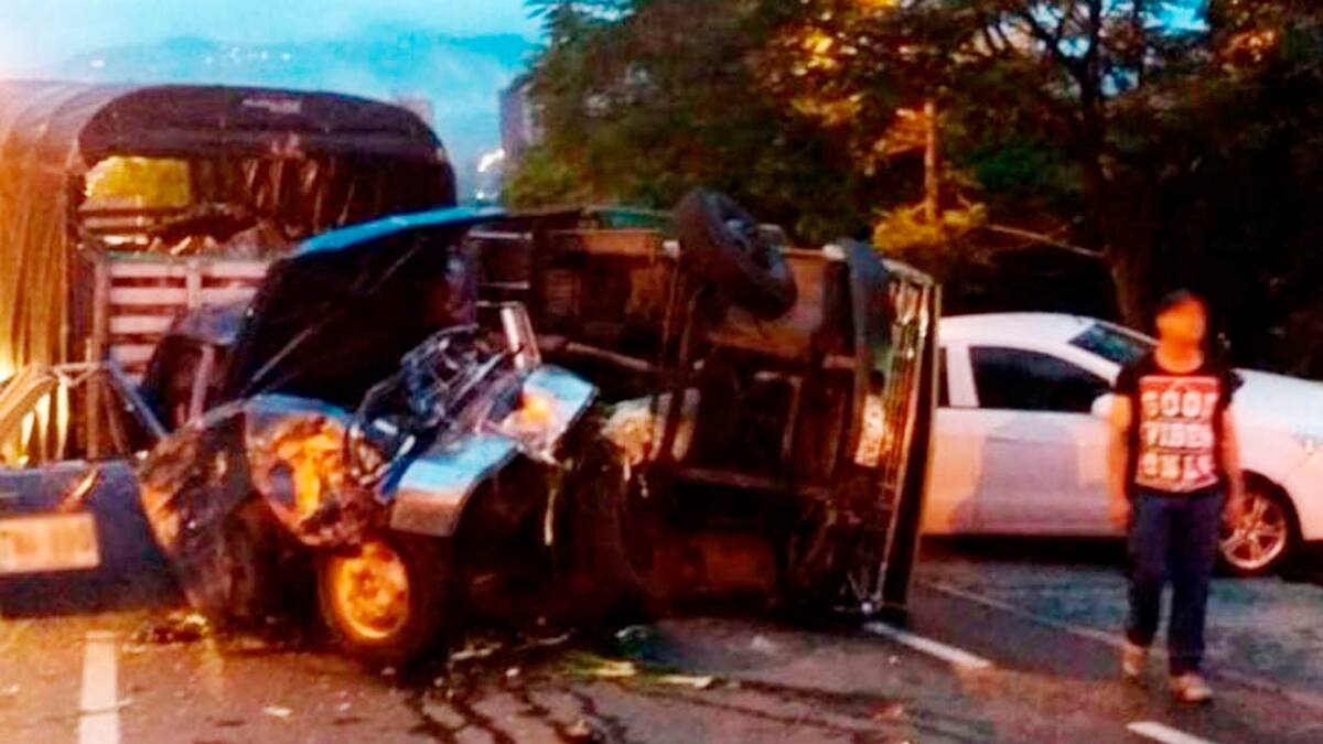 La Oficina de Gestión del Riesgo detalló que los automotores comprometidos son dos camiones, una camioneta, tres automóviles y cuatro motos. Además, indicó que entre las víctimas mortales hay un motociclista y un peatón.