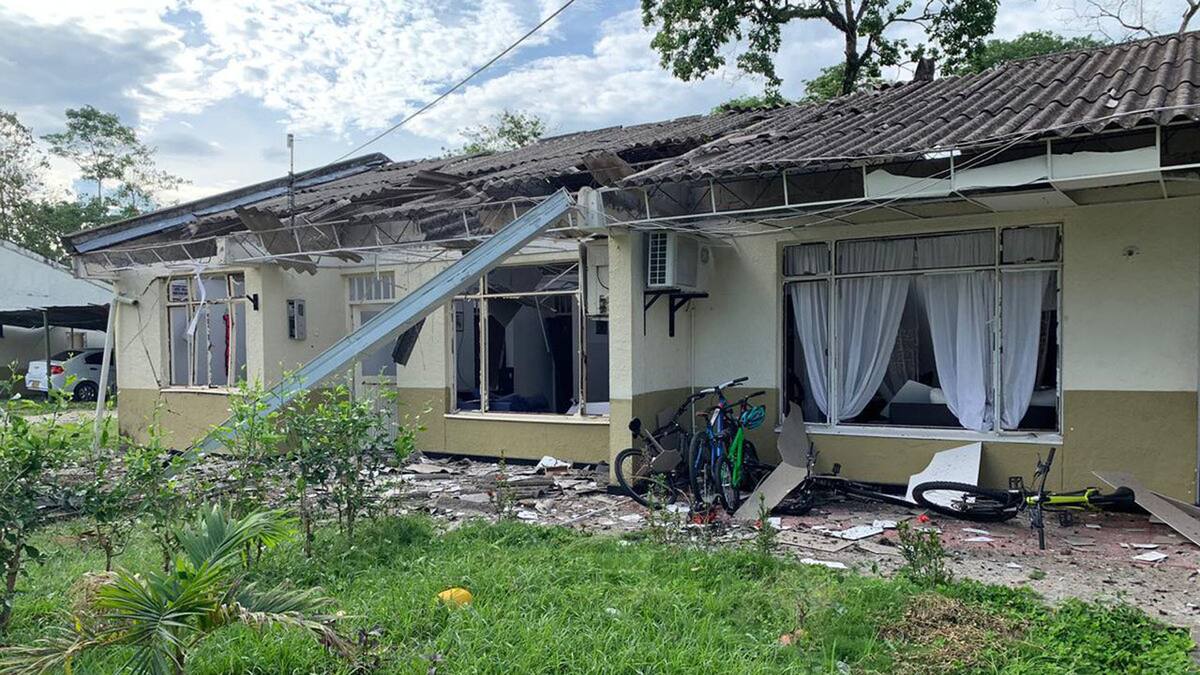 Según testigos, aproximadamente seis cargas explosivas cayeron sobre las casas fiscales de las instalaciones del Grupo de Caballería Mecanizado No.18 General Gabriel Revéiz Pizarro del Ejército y destruyeron techos y ventanas.