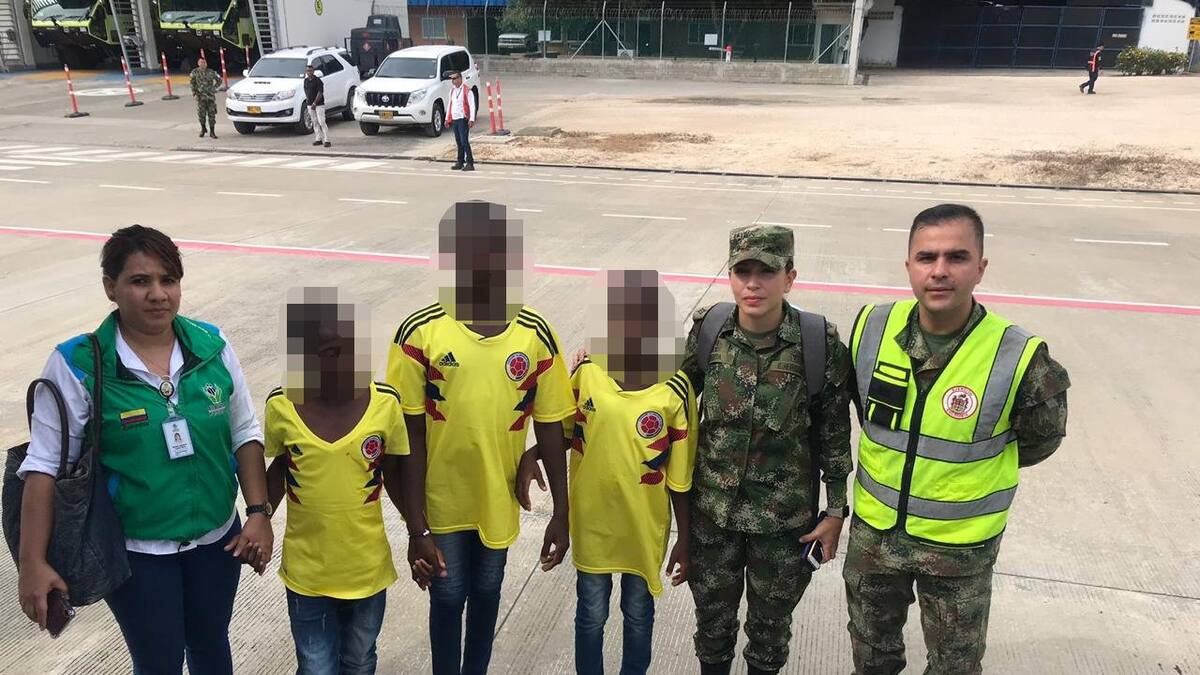 'En un Avión de @COL_EJERCITO @Ejercito_Div7 hace unos minutos, acompañados por nuestra sicologa y el @ICBFColombia viajaron hacia Cali, los 4 pequeños', informó a través de su cuenta de Twitter el comandante de la División Séptima del Ejército, general Juan Carlos Ramírez.