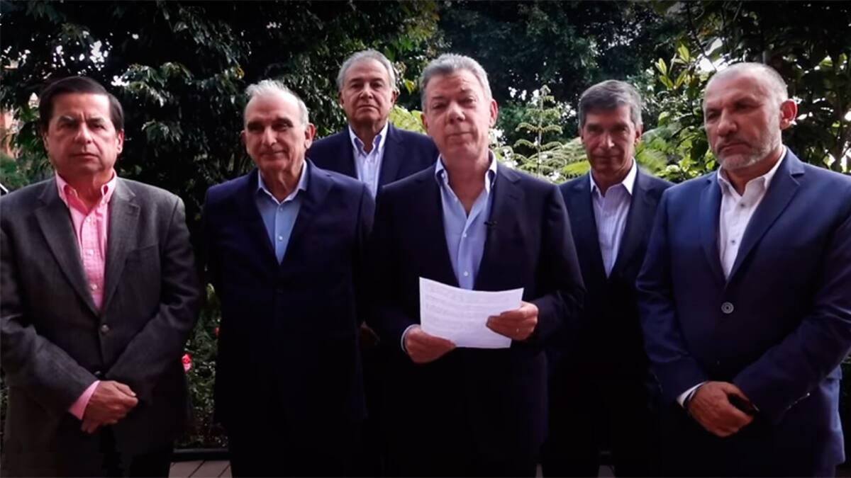 El premio nobel de paz, a través de un video en el que aparece con los exnegociadores de paz y exfuncionarios de su gobierno, Humberto de la Calle, el general (r) Óscar Naranjo, Juan Fernando Cristo, Rafael Pardo y Roy Barreras, señaló que 'el logro de la paz es un bien para las futuras generaciones que todos los colombianos estamos llamados hoy a proteger: no permitiremos que Iván Márquez y los demás desertores que están con él pretendan poner en peligro este logro. Ellos mismos escogieron convertirse simplemente en otra banda criminal'.