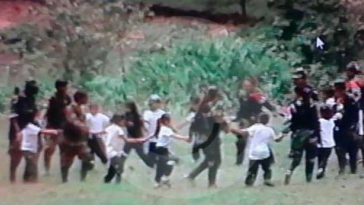 Una de esas imágenes muestra a hombres y mujeres vestidos como guerrilleros del ELN en una ronda infantil supuestamente en Táchira.