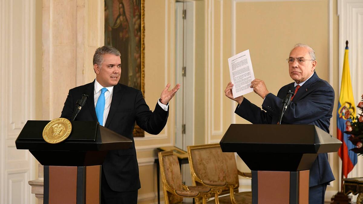 'Colombia cuenta, además, con un marco macroeconómico sólido por lo que está bien equipada para hacerle frente a este entorno exterior cada vez más complejo y desafiante. La credibilidad del objetivo de inflación y la credibilidad de la política monetaria han actuado como amortiguadores eficaces frente a los golpes de la crisis mundial', subrayó el Secretario General de la Ocde en una declaración con el Presidente Duque en la Casa de Nariño.