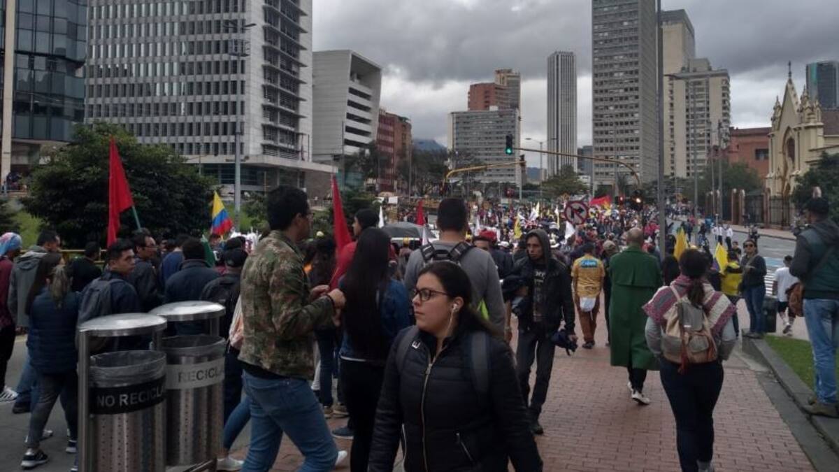 Una de las marchas más nutridas estuvo atravesando la carrera 7 desde las universidades Javeriana y Distrital hasta la Plaza de Bolívar.