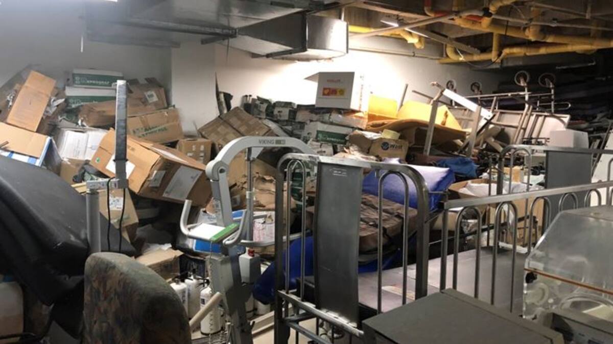 Describe el ejercicio de control que la ambulancia no funciona, y que los equipos biomédicos y de cómputo, muebles, camillas y demás enseres están abandonados en el sótano del hospital, con el riesgo de dañarse.