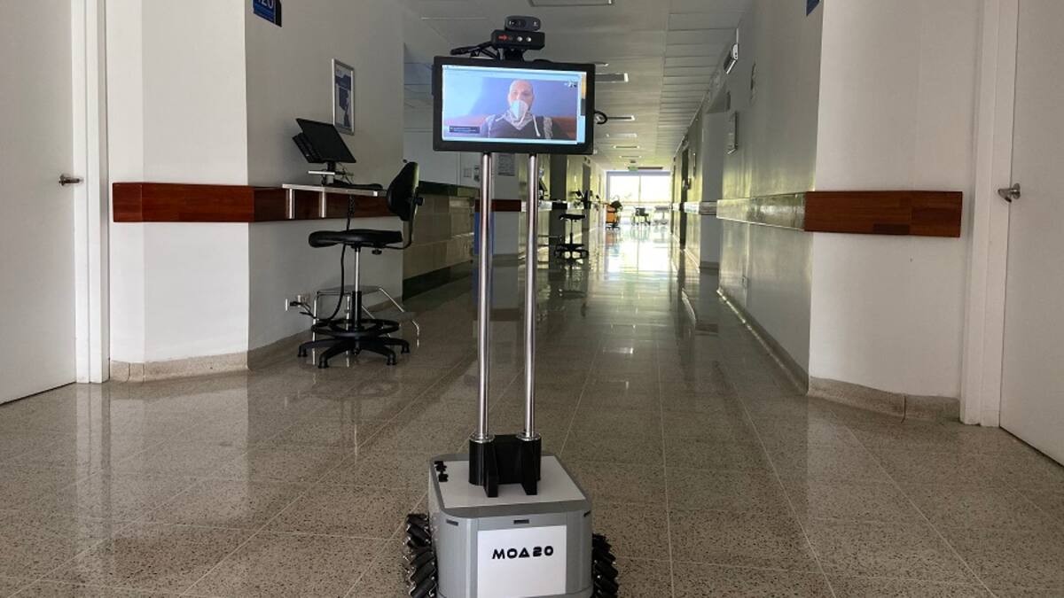 El Robot, cuenta con capacidades como medir la temperatura del paciente aislado y facilitarle la comunicación con su familia y personal de salud.