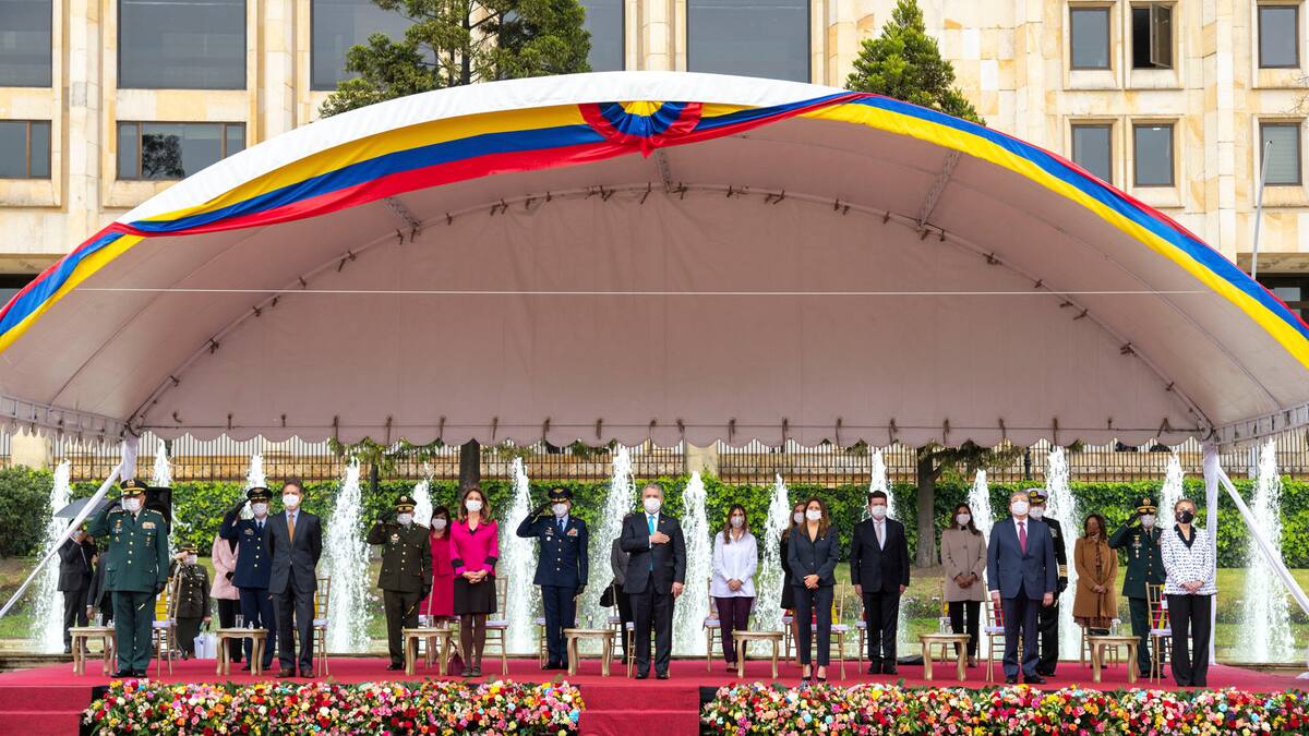 En la Plaza de Armas de la Casa de Nariño, sede del Ejecutivo, el jefe de Estado encabezó los actos conmemorativos del 20 de julio, que por la pandemia no tuvo el tradicional desfile militar en Bogotá y otras ciudades y pueblos de Colombia.